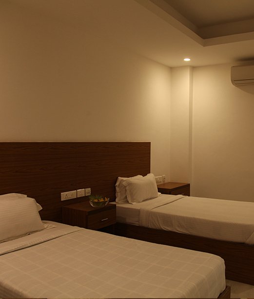 Our Wellness Deluxe Rooms set the benchmark for holistic wellness. Thoughtfully designed, these rooms combine modern comforts with a peaceful ambiance, featuring mindful architecture that nurtures the mind, body, and soul, creating the ideal environment for healing. In this tranquil space, you can relax, immerse yourself in wellness, and prepare to embrace the transformative power of Ayurveda knowledge and treatments.